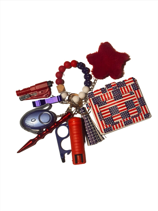Stars N Strips (Flag)Beaded Wallet Safety Keychain