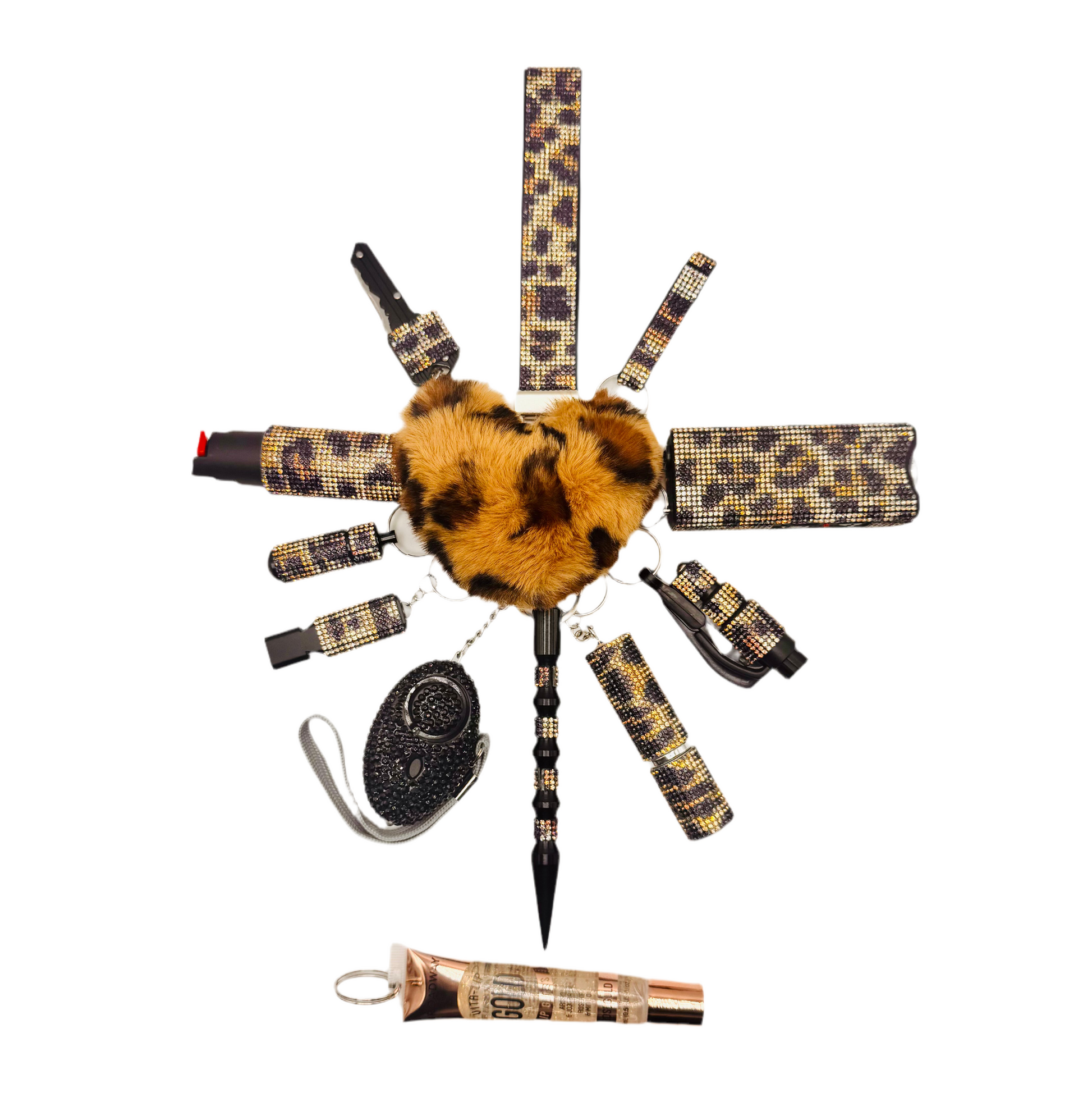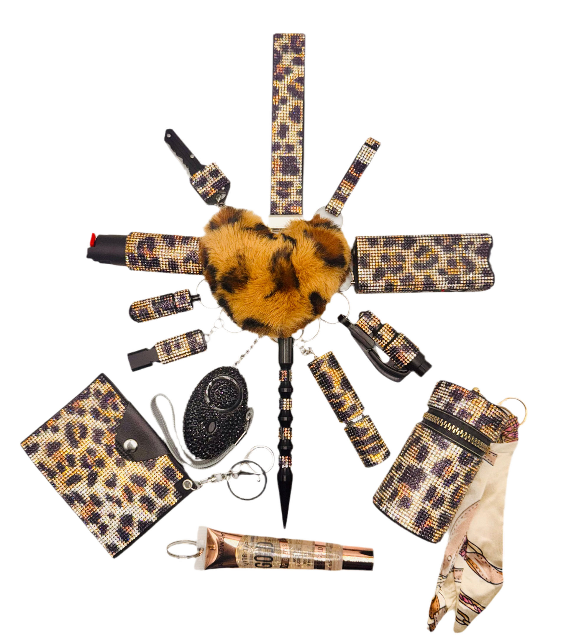 The starter bundle kits will include Mixed Colors 10 Bling Wristlets, 10 Bling Stun Guns(Knockouts), 10 Bling Pepper Spray, 10 Bling Kubatons, 10 Bling Safety Alarms, 10 Pom Poms, 10 Bling Discrete Keys, 10 Bling 2 in 1 Seatbelt Cutters/Window Breaker, 10 Bling Whistle, 10 Lip Gloss and 10 Frosted Zipper Bags