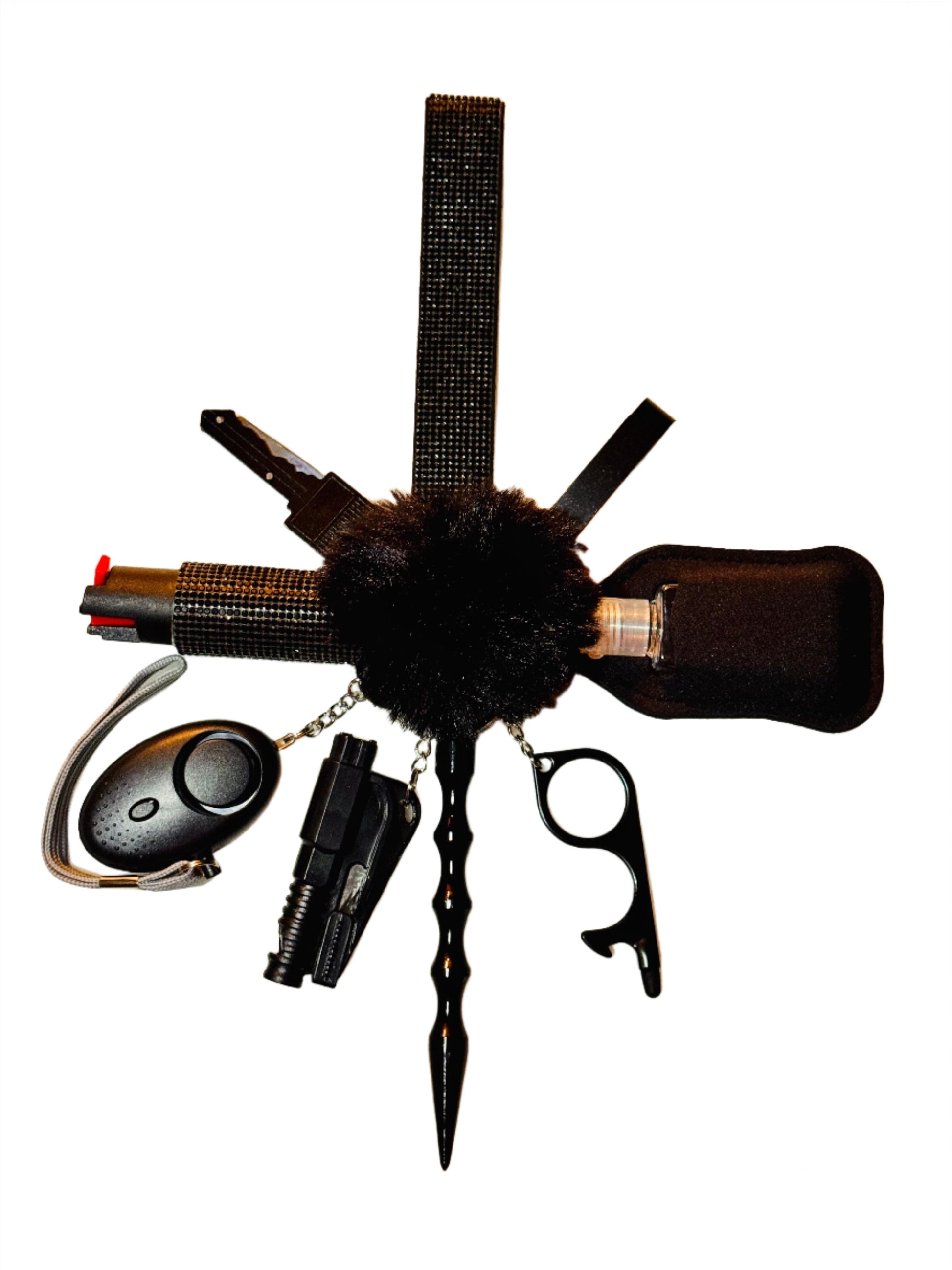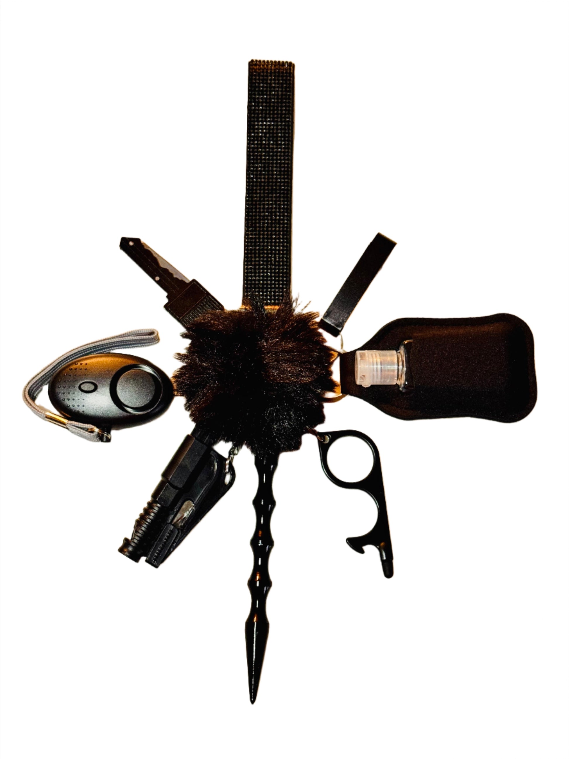 Black Glitter Safety Keychain