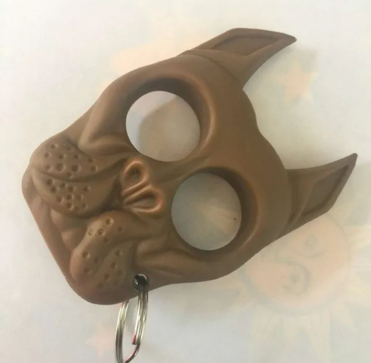 This Dog Knuckles is a thick plastic Two-Finger defense tool. The plastic body makes it light weight and easy to carry.