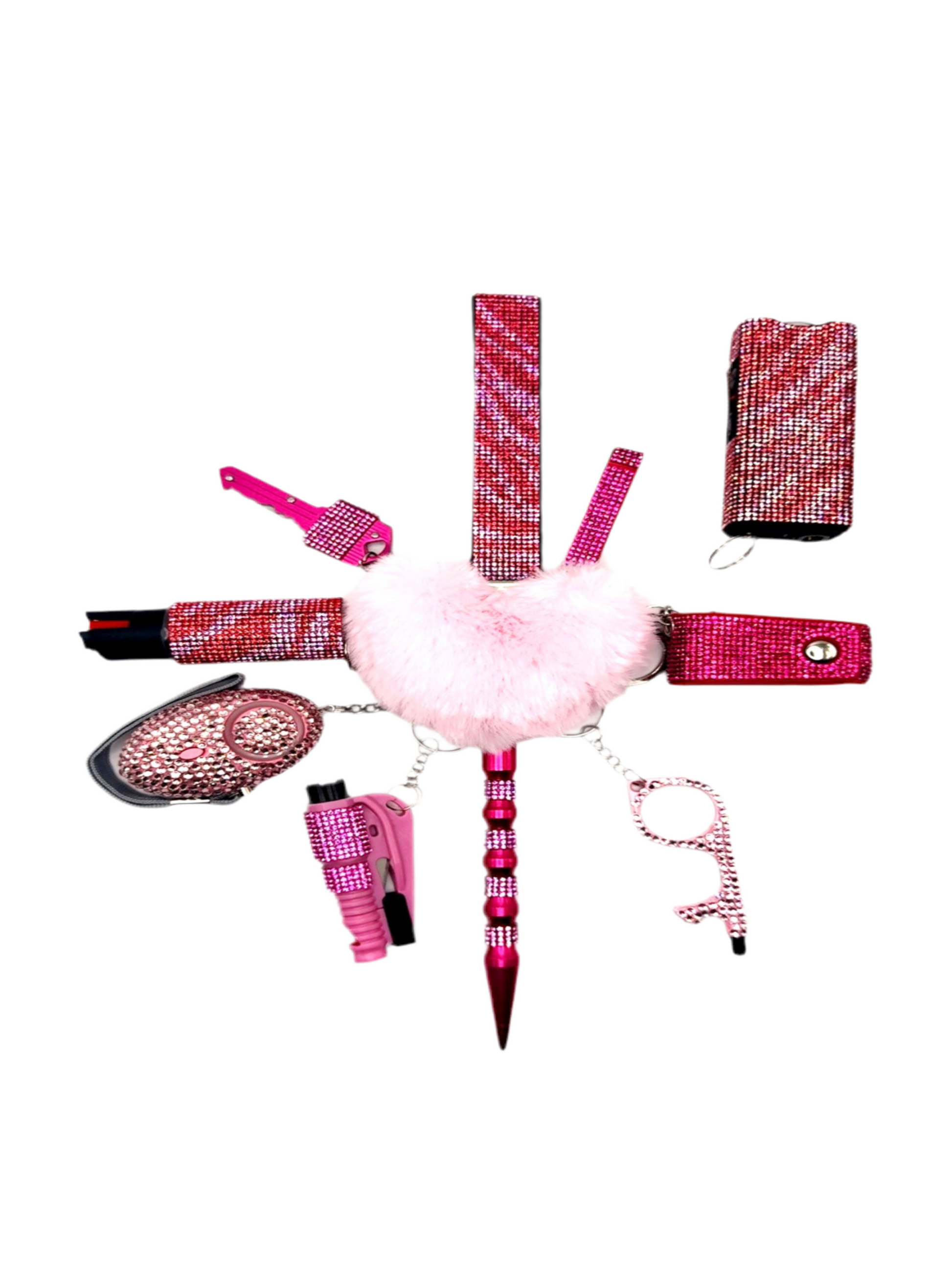 Hot Pink/Pink Zebra Bling Safety Keychain