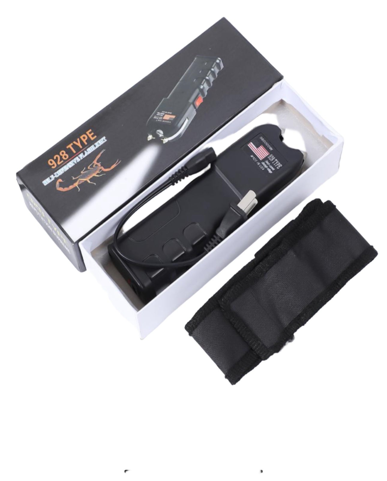 928 Type comes with a built-in LED flashlight. This stunner offers reliable protection with up to 36,000 volts and 150,000 watts of stopping power. This is a detachable cord. Comes with nylon holster with belt loop. The Big Boy Stunner delvers a punch that Is hardly to be seen, felt and heard by a stun gun of this size.