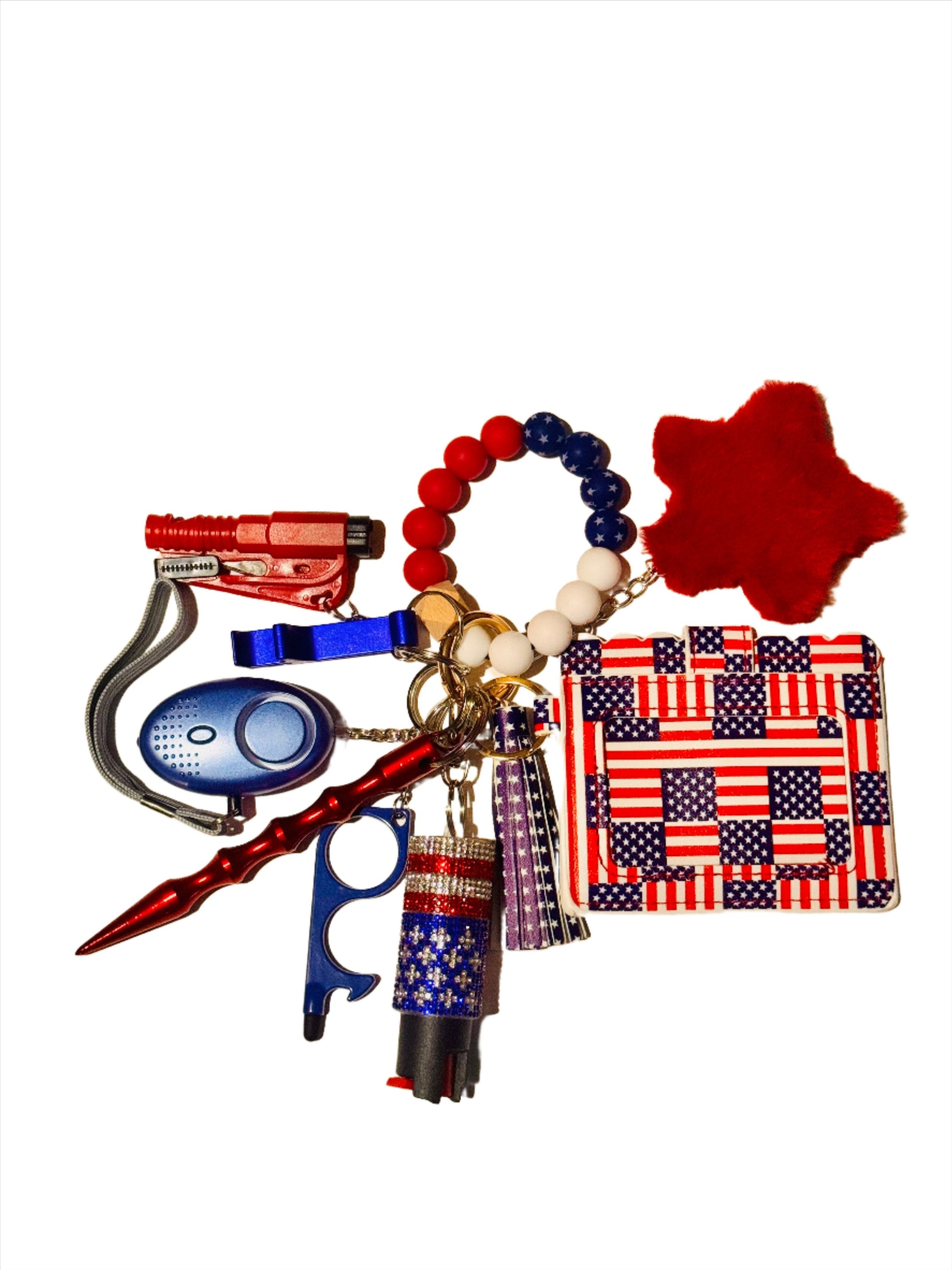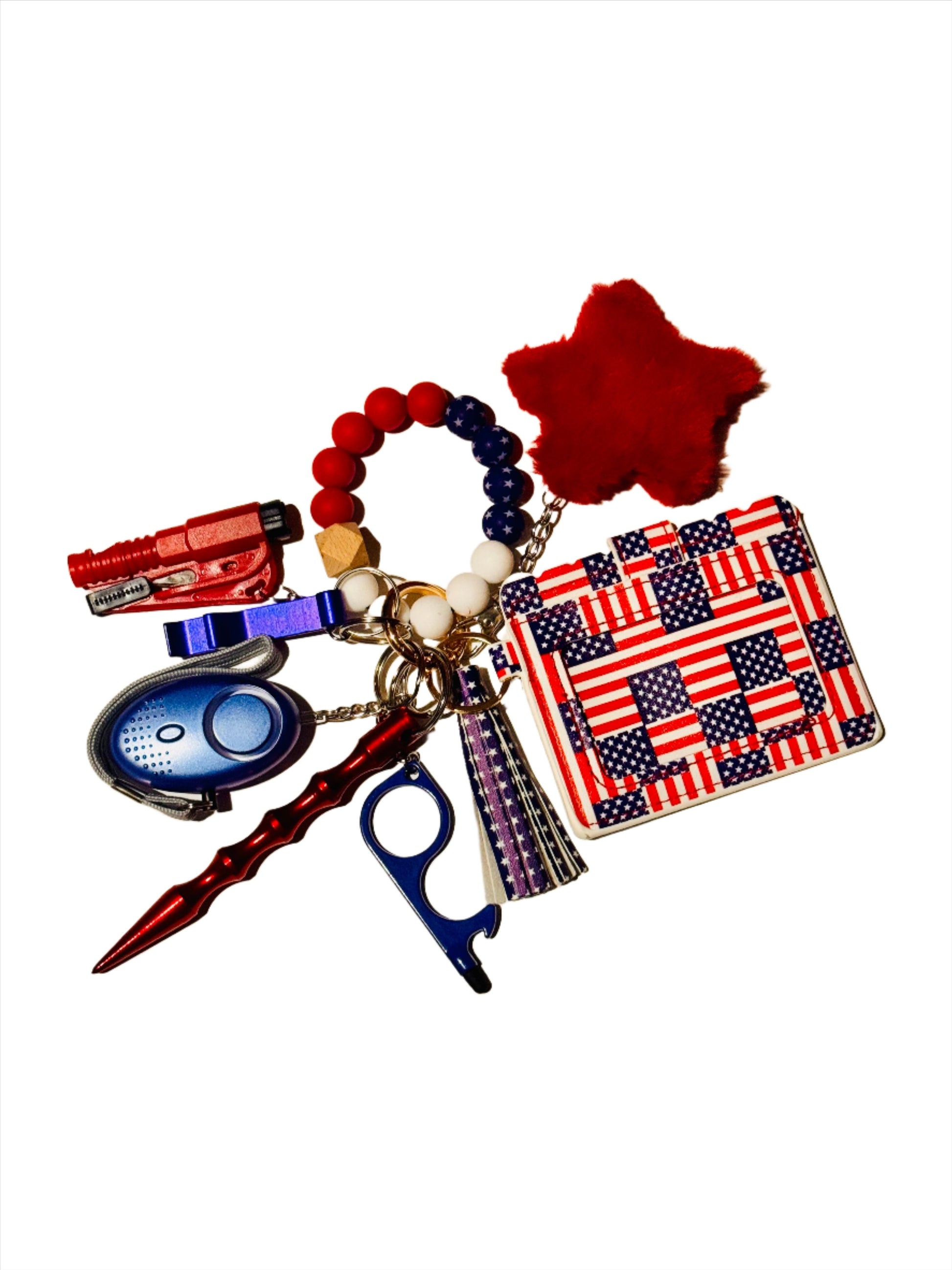 Stars N Strips (Stars)Beaded Wallet Safety Keychain