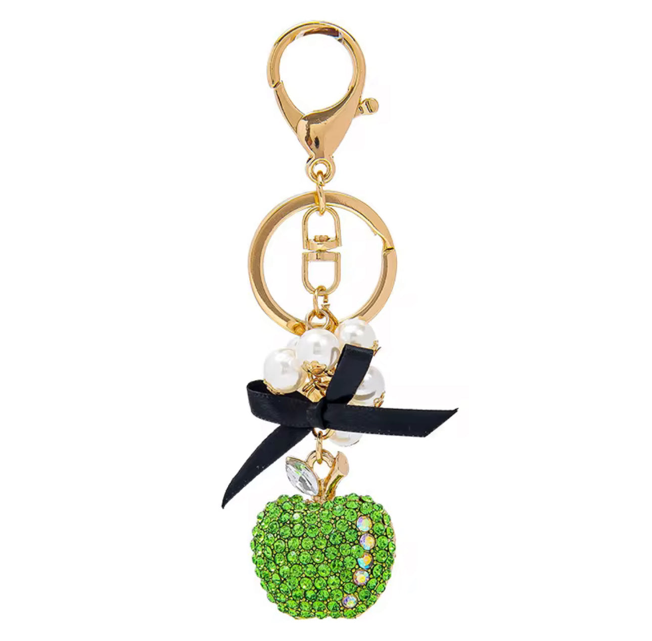 Wholesale 3D Bling Lime Green Apple Keychain Charms
