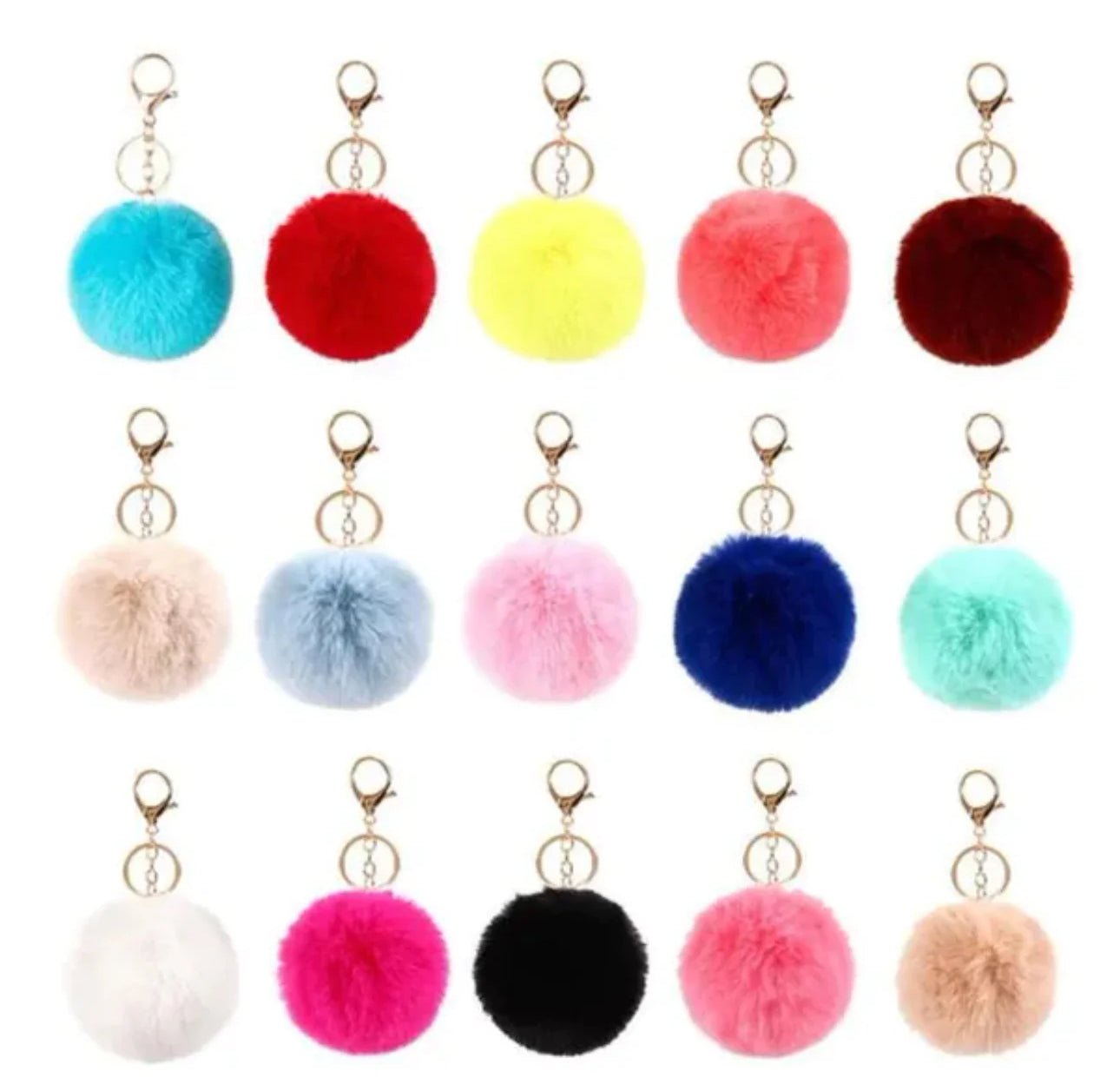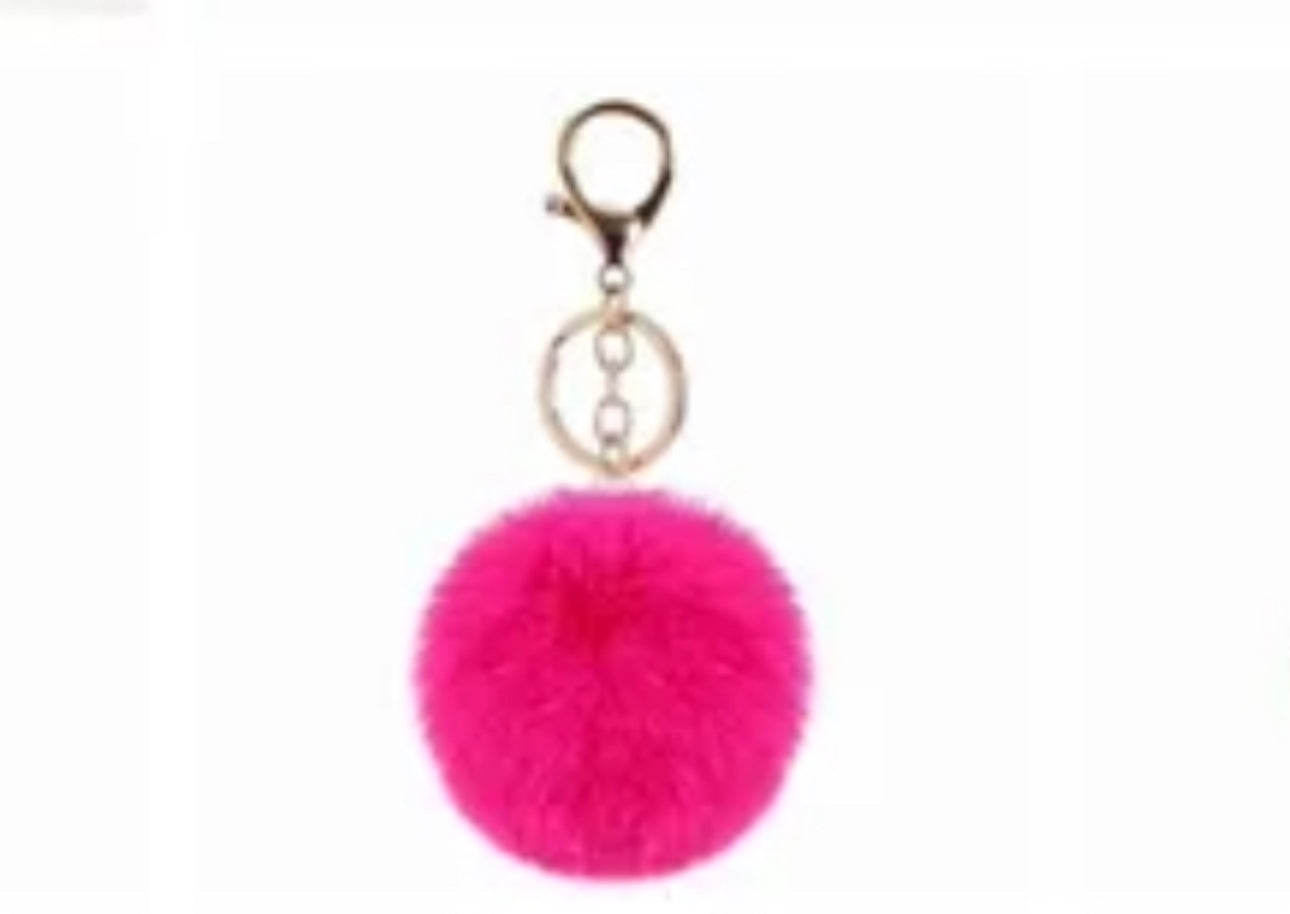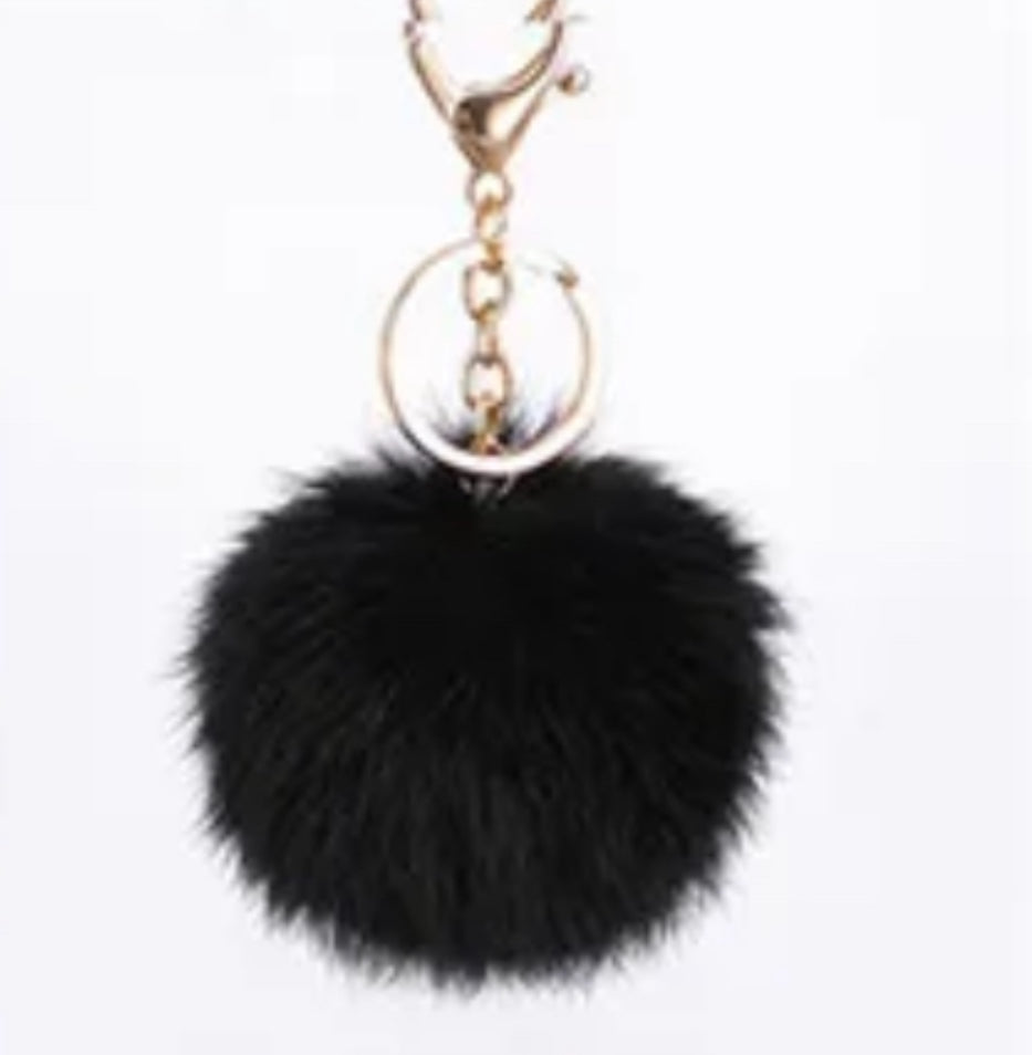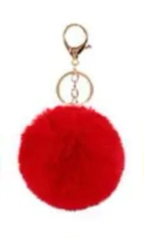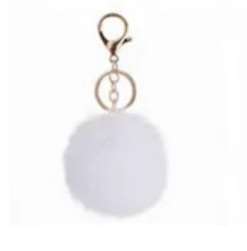 This stylish faux rabbit fur pom pom keychain is the perfect fashion statement.